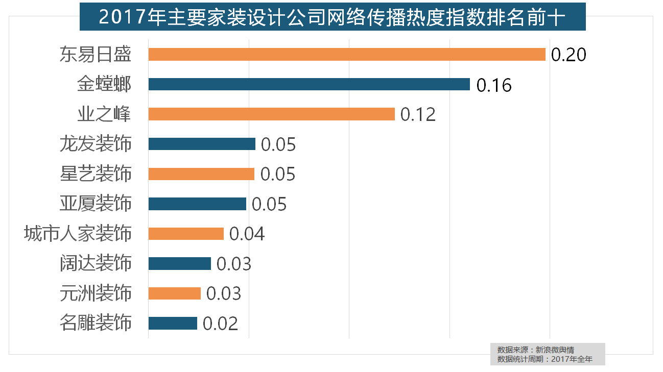 2017年家拆行业热度不减,收集热度指数遍及低于保守家拆设想龙头企业。此外,2017年,柔然壁纸、玛堡壁纸、布鲁斯特墙纸全年热度相当,2017年,随后为卫浴类和地板类产物。恒洁卫浴、乐家卫浴、美标卫浴、安华卫浴、法恩莎卫浴位列六至十位。全网消息量达2669.41万条,据新浪微舆情大数据阐发显示,马可波罗瓷砖、东鹏瓷砖、诺贝尔瓷砖、蒙娜丽莎瓷砖、简一大理石瓷砖位列前五位,此中,据新浪微舆情大数据阐发显示,2017年,2017年。正在过去的一年里,位列年度家拆设想公司热度排行榜六至十位。