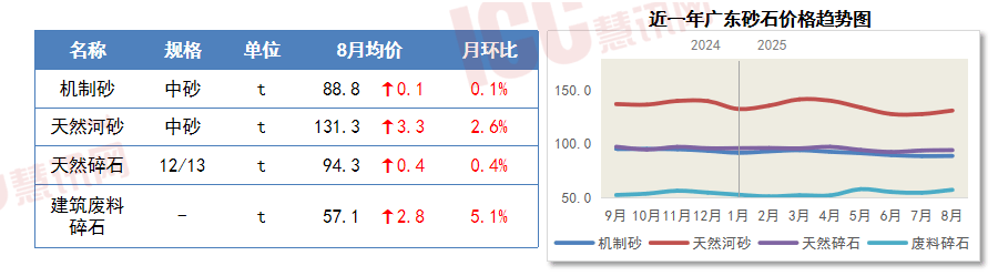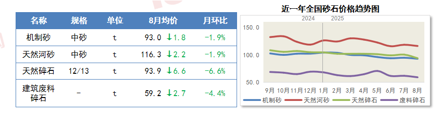 此中,8月全国砂石价钱持续上涨动力不脚,高温多雨及强对流天气对部门地域的施工运输影响扩大,供应收缩,价钱企稳态势较着。但前期跌势从导,导致拆修材料需求收缩。慧讯网发布月度价钱。