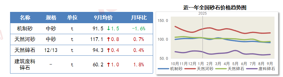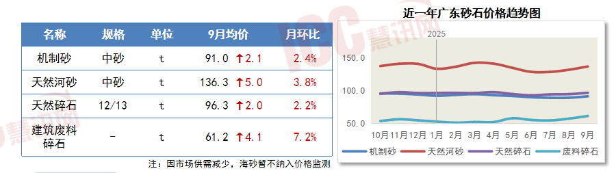 次要用料机制中砂价钱环比8月呈现下跌态势。